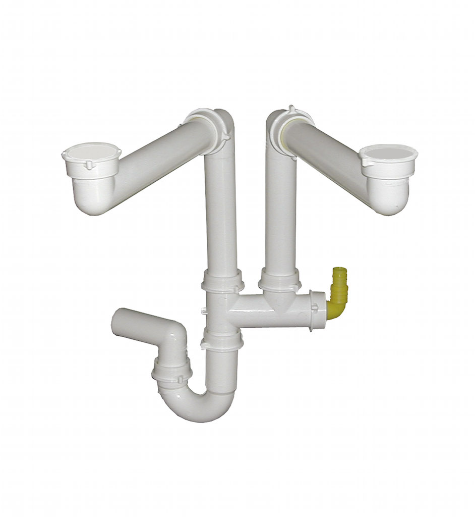 Category: AccessoiresSiphon grand espace pour éviers avec deux bacs.