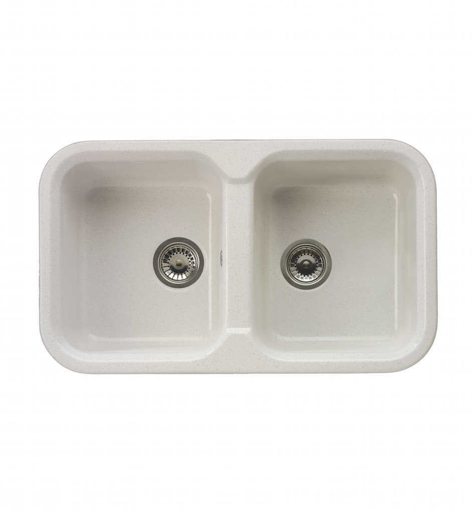 Évier en quartz et résine deux bacs, convenient pour meuble à partir de 80cm. Montage sur le plan de travail. Disponible dans toutes les couleurs de notre catalogue. Simplicité et naturalité
